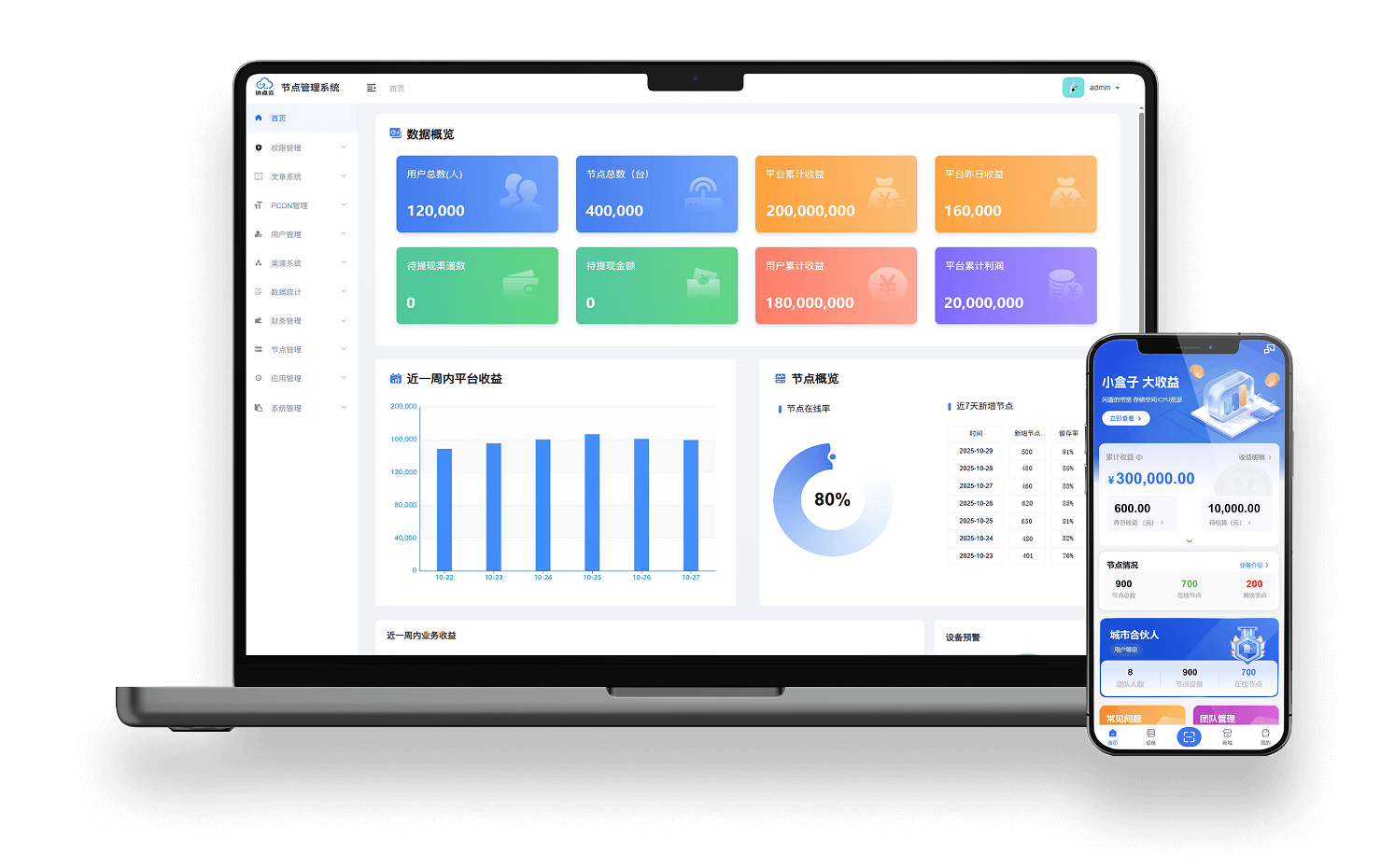 模块化数据看板大屏,全面展示节点资源数据,实时监控管理